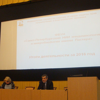 18 января в Конференц-зале состоялось заседание Ученого Совета Института, на котором с основным докладом об итогах деятельности учреждения за 2016 год выступил директор Института Арег Тотолян. В частности, были представлены сведения по отраслевым НИР в 2016-2020 гг., по научной продукции в сравнении с 2015 годом (количеству монографий, методическим и клиническим рекомендациям, санитарным правилам, аналитическим обзорам, патентам на изобретения, изделиям медицинского назначения – наборам реагентов, справкам по депонированиям авторских штаммов и др.), по публикационной активности и пр.